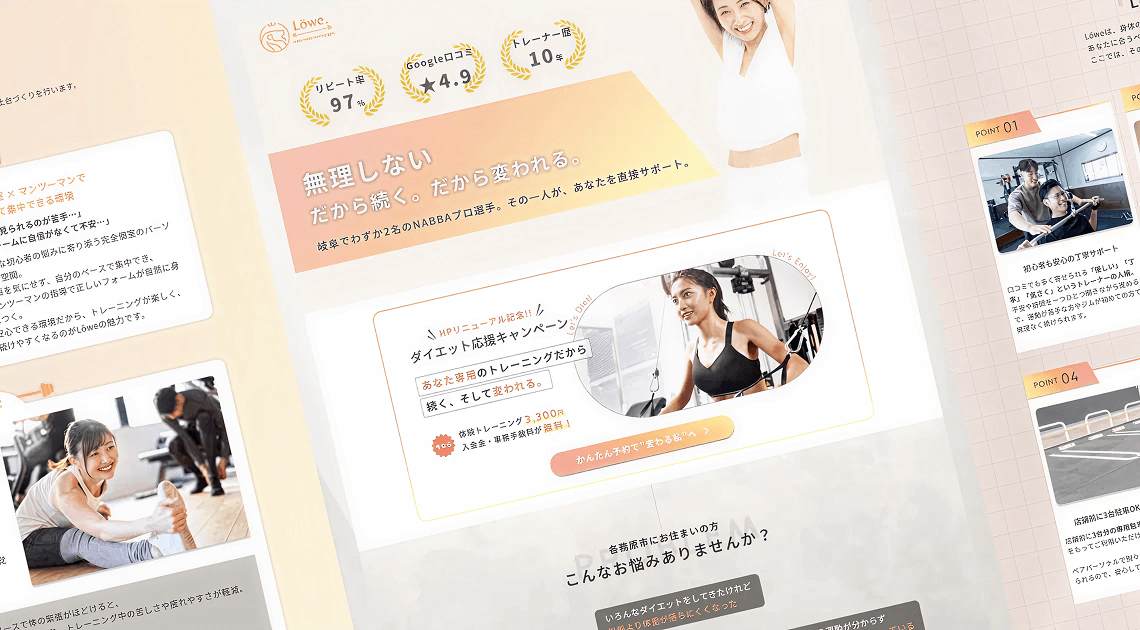 岐阜県各務原市を拠点に活動されているパーソナルジム「Löwe(レーヴェ)」様の公式サイトをリニューアルしました。
